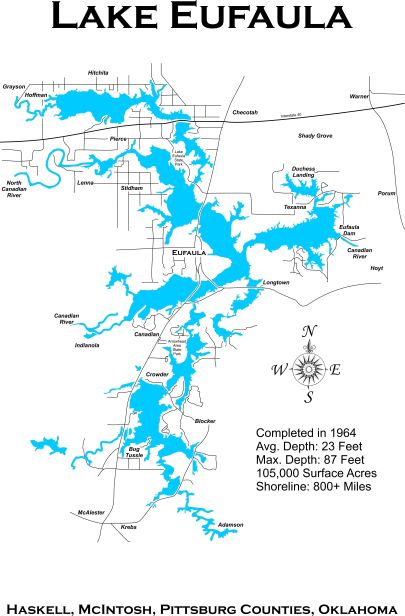 Map Of Eufaula Oklahoma Map of Lake Eufaula: Finding your way around the lake | Porches : The approximate coordinates of Oklahoma are 35.5° N latitude and 97.5° W longitude, which sees it as a bridge between the American Midwest, Southwest, and Southern regions. . Eufaula Middle School is a public school located in Eufaula, OK, which is in a remote rural setting. The student population of Eufaula Middle School is 267 and the school serves 6-8. At Eufaula .