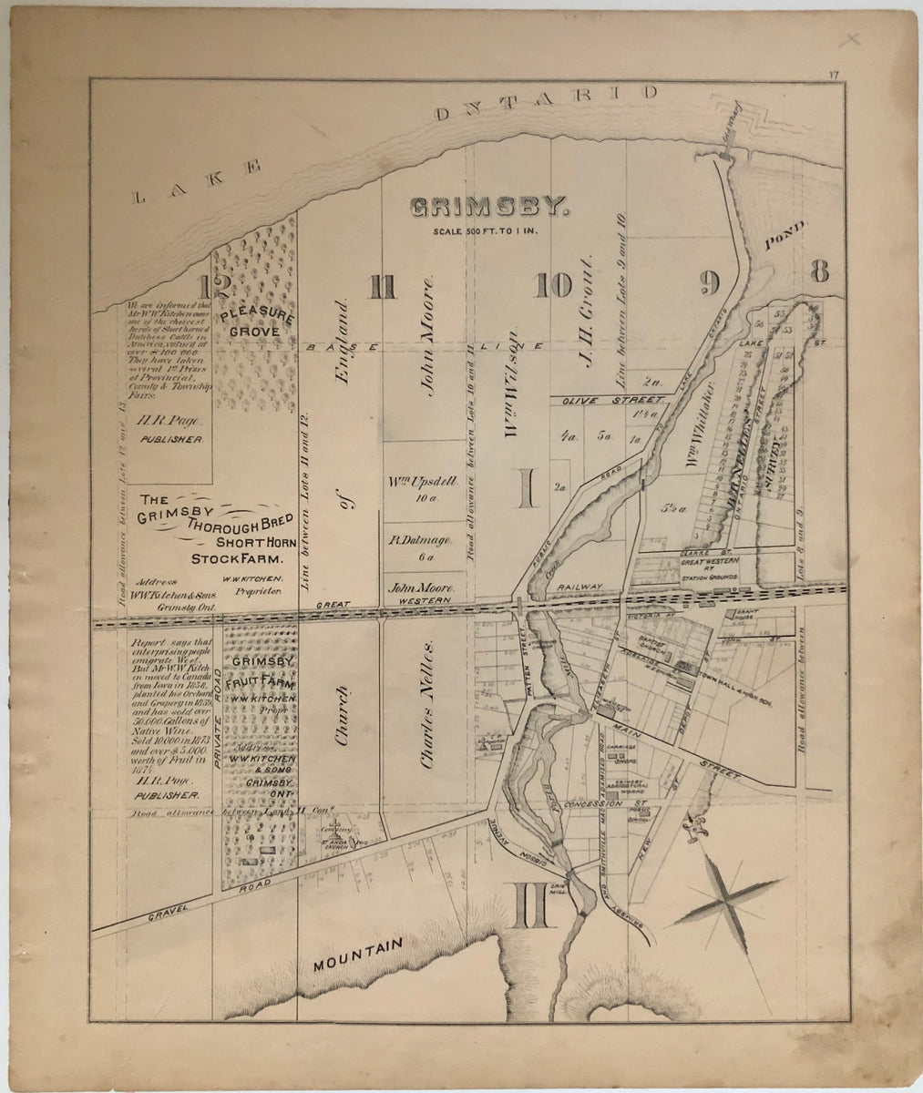 ONTARIO). (LINCOLN COUNTY). Antique Map of Grimsby Ontario 1876