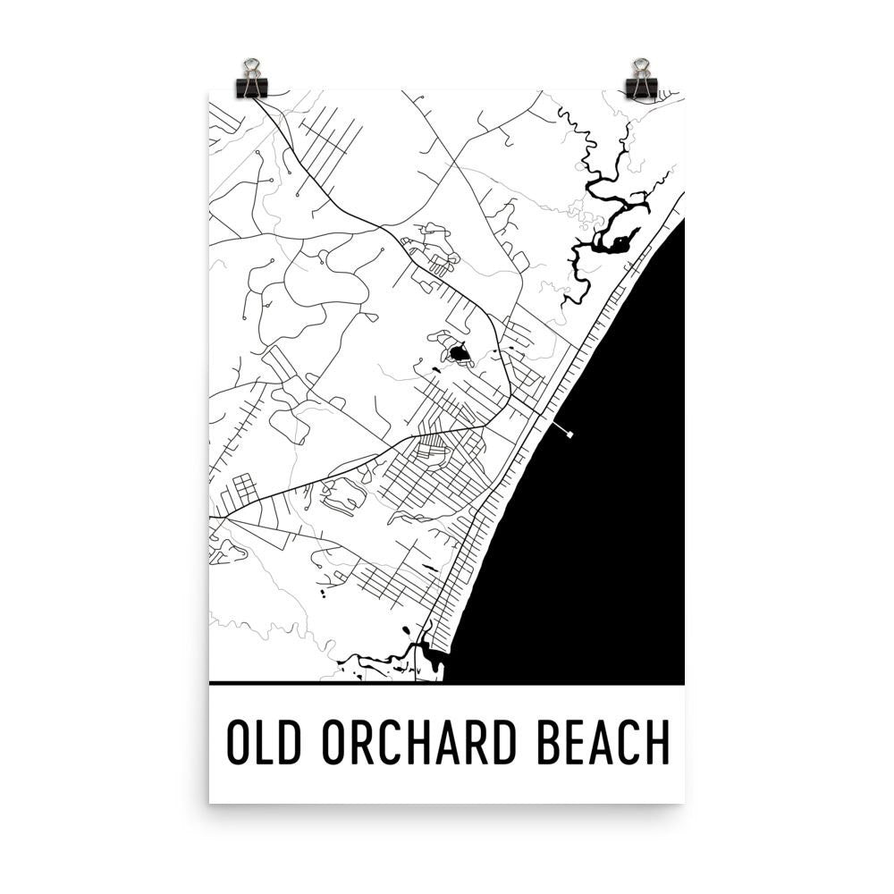 Old Orchard Beach ME Street Map Poster Wall Print by Modern Map Art