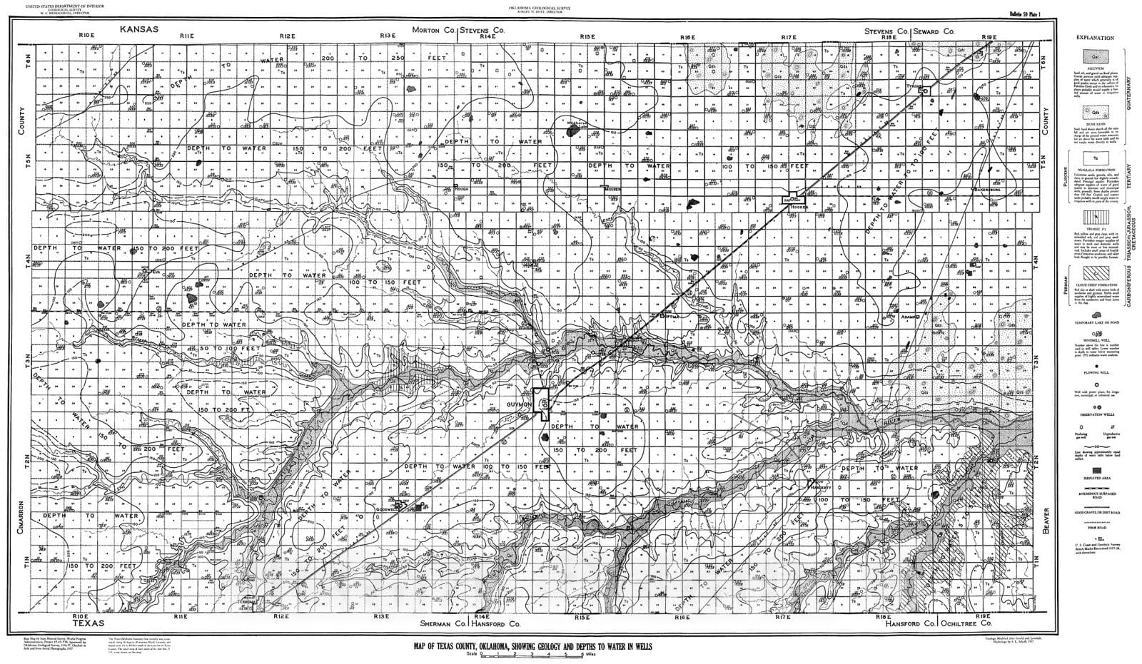 Map : Plate 1. Map of Texas County, Oklahoma, showing geology and