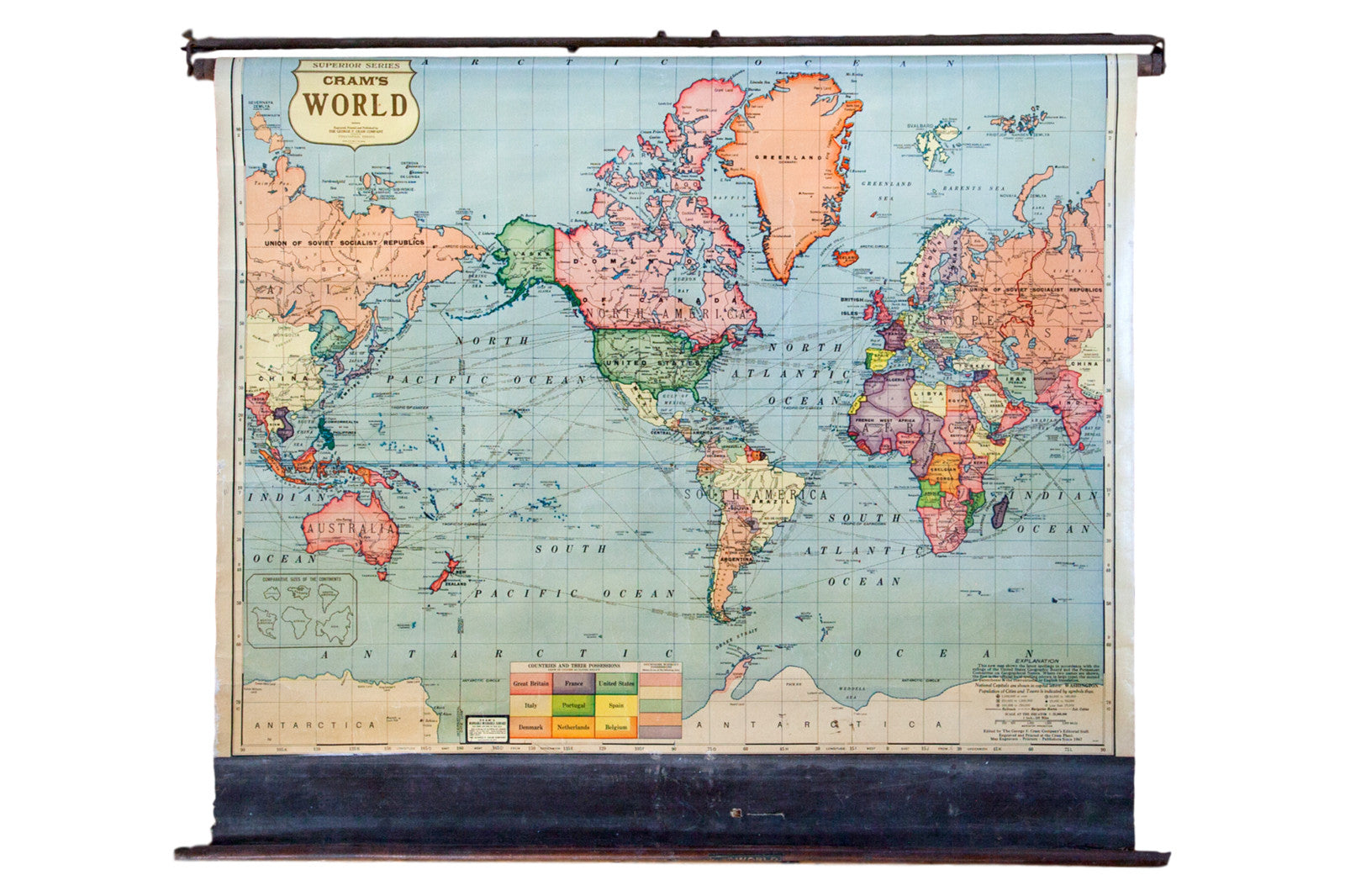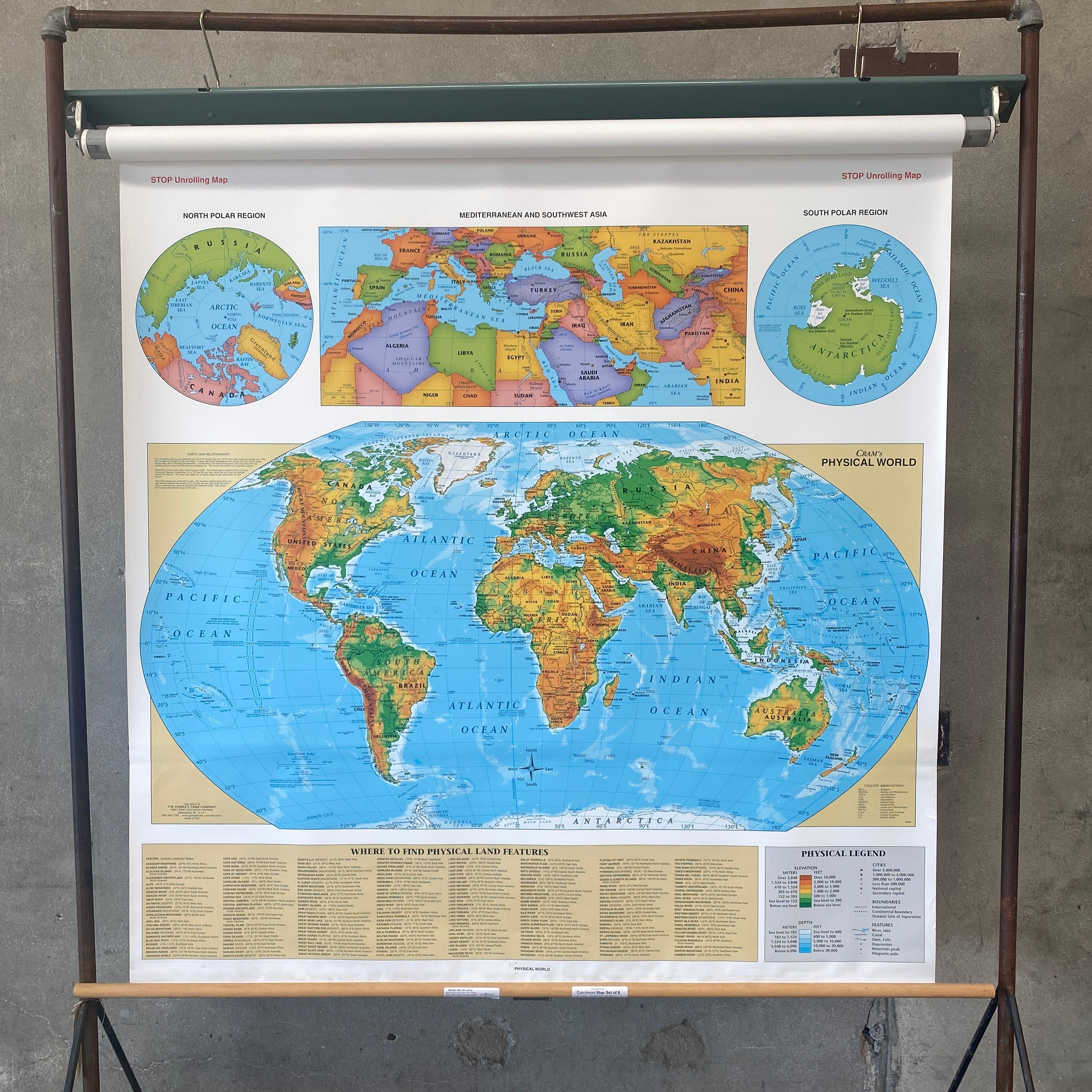 Vintage School Map, World Map, Pull Down Map, Large Industrial